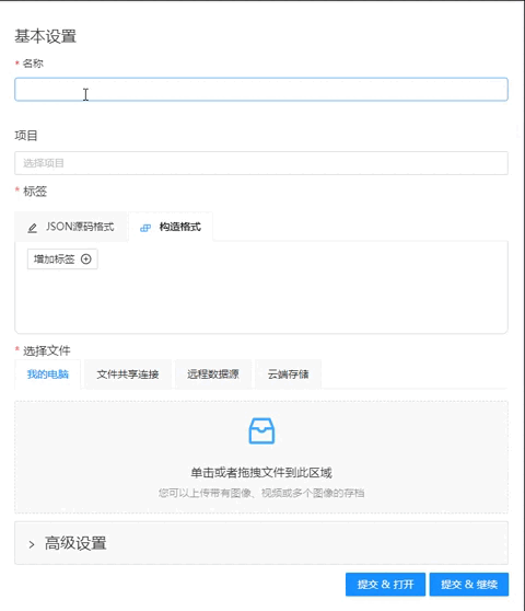 点击提交 & 打开创建成功后会自动打开任务,点击提交 & 继续会继续停留继续创建任务