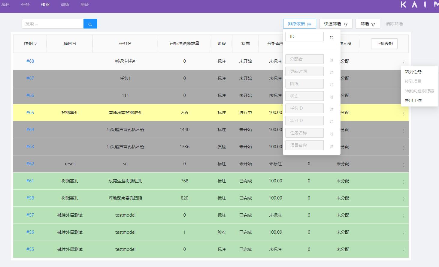 在作业页面上,有表格显示作业列表. 每一行数据包括: