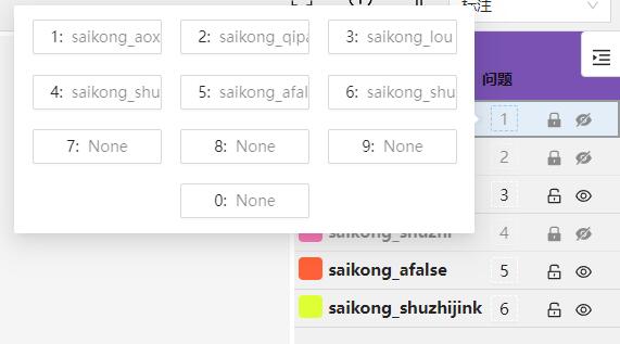 您可以使用热键更改对象的标签. 为此,需要为标签分配一个数字(从0到9). 默认数字1,2…0被分配到前10个标签. 要指定一个数字,请单击侧边栏中标签名称右侧的按钮.
